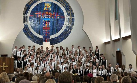 Hreiðar Ingi Þorsteinsson stjórnar kórnum og í dag eru 106 meðlimir í honum, þar af eru 40 nýir sem bættust við í haust.