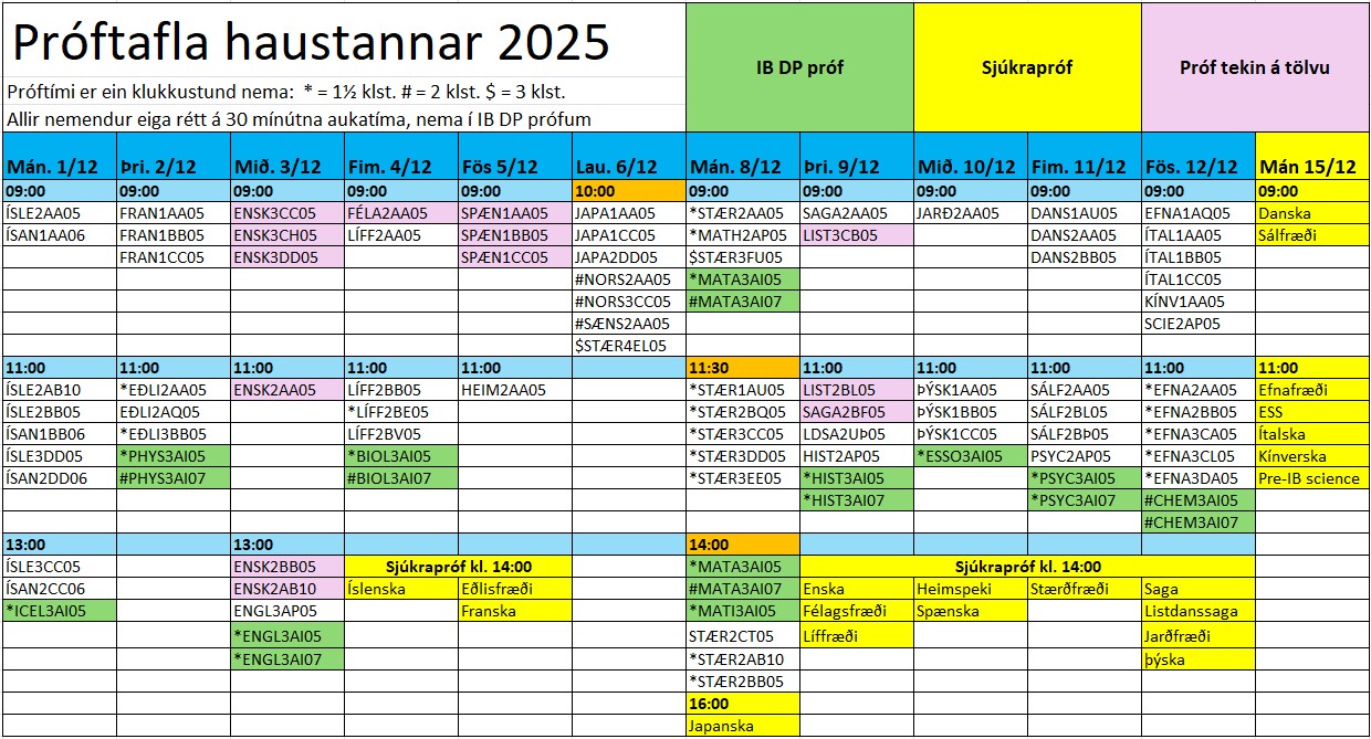 - Ef tvö próf eru á sama tíma - þarf að sækja um að hliðra próftöflunni.